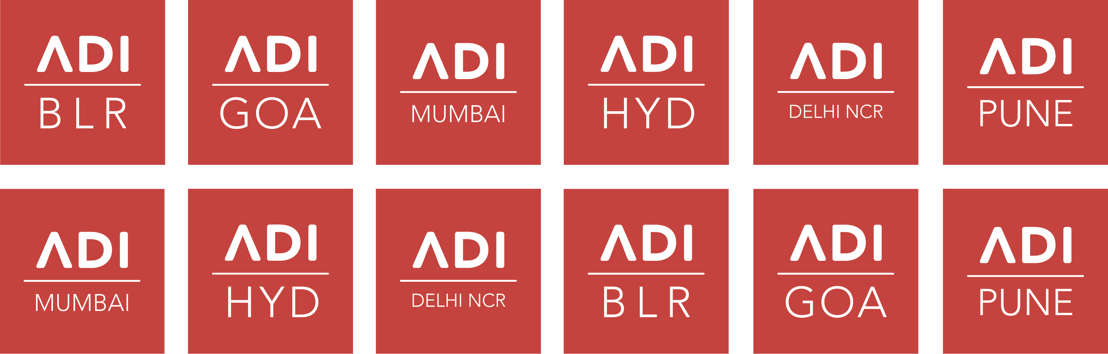ADI has local city chapters across India. We had to create a brand system that allowed for flexibility – for the primary ADI logo to be adapted by the city chapters.We created a system within the main logo unit, that allows the viewer to identify the city easily. Each city can choose either a three-letter acronym, or choose to use the complete name.